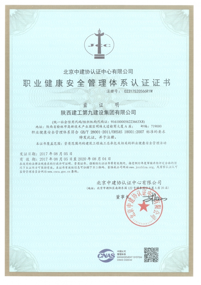 職業(yè)健康安全管理體系認(rèn)證證書...